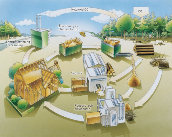 Problemet med det är att allt kol som trädet genom fotosyntes bundit in i materialet släpps ut i atmosfären igen vid förbränningen. Därför omvandlar vi flis till träfiberisolering istället!